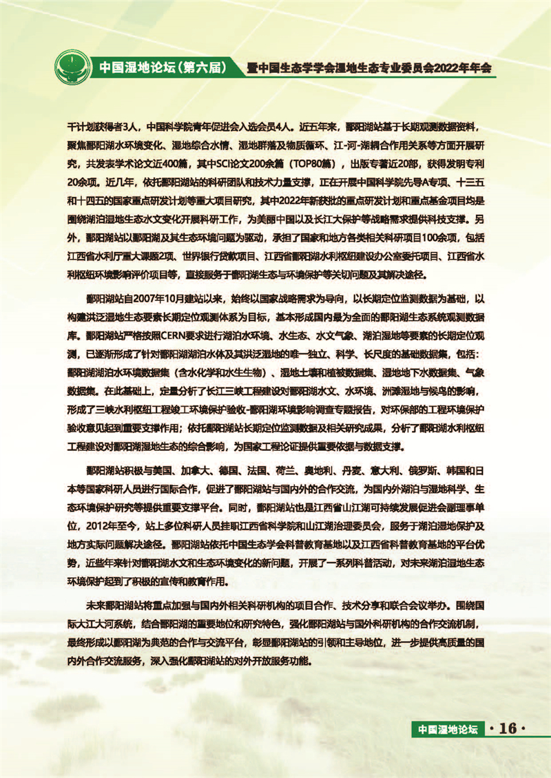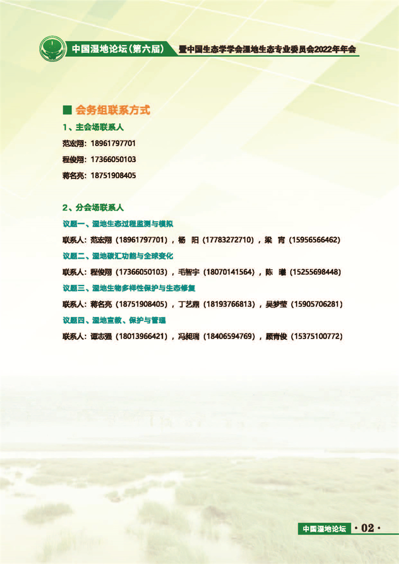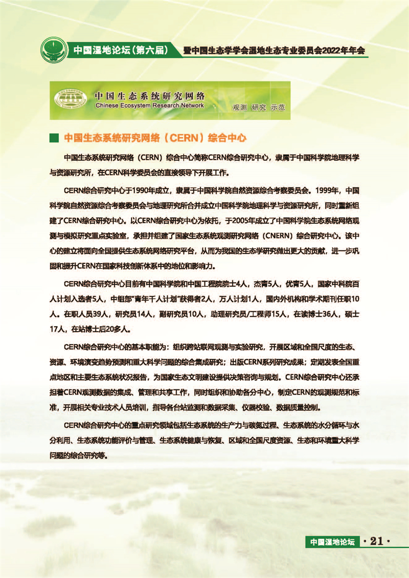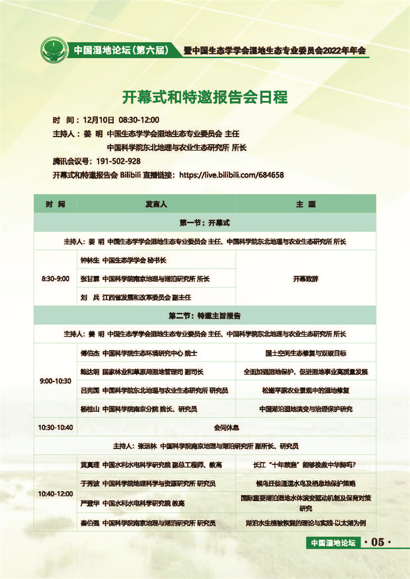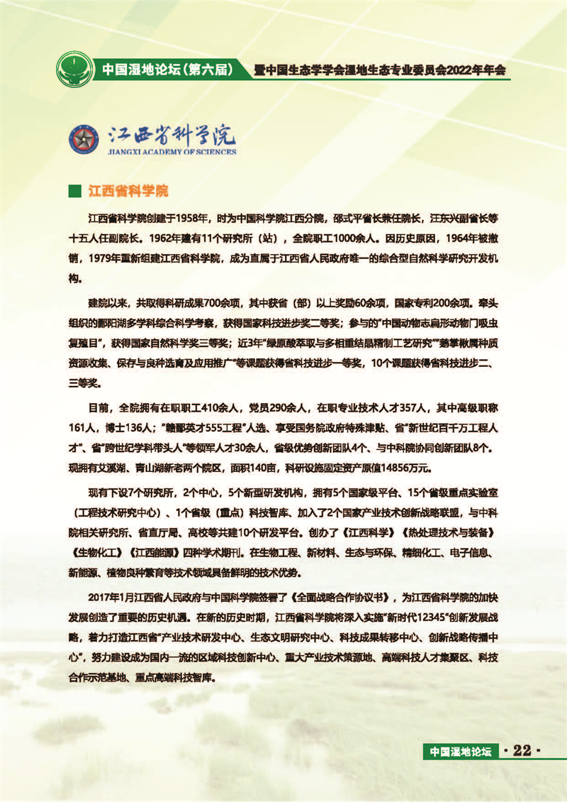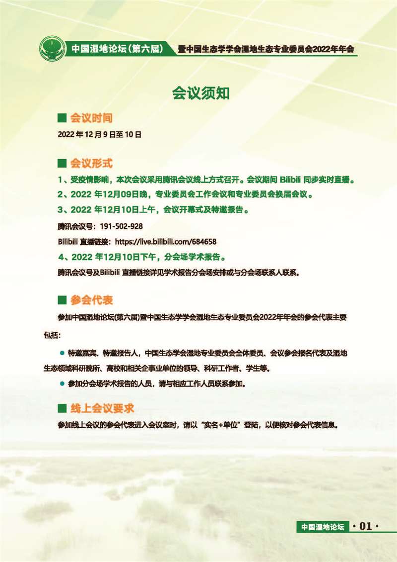 中國(guó)濕地論壇(第六屆)暨中國(guó)生態(tài)學(xué)學(xué)會(huì)濕地生態(tài)專業(yè)委員會(huì)2022年年會(huì) 會(huì)議手冊(cè)