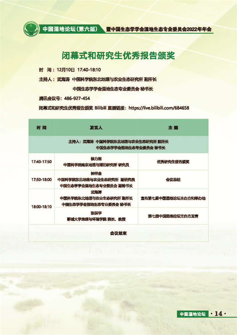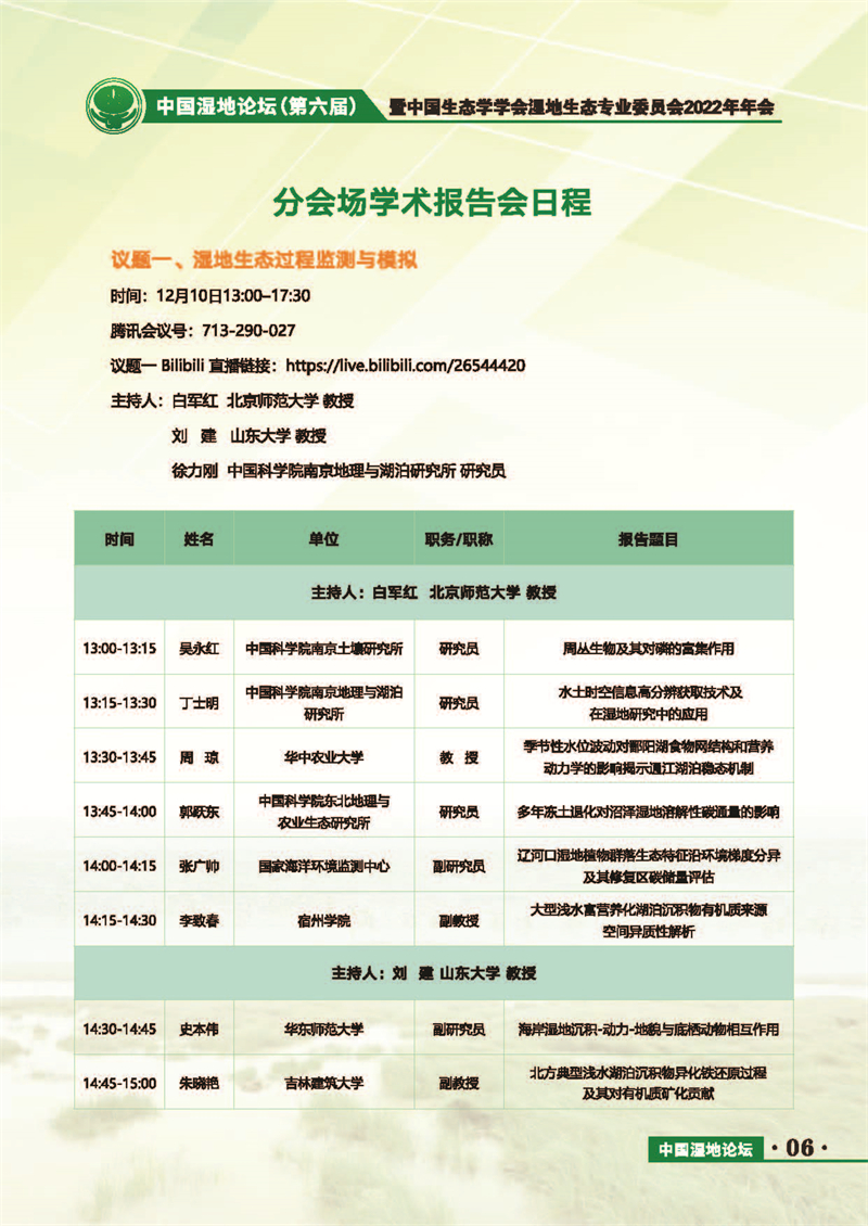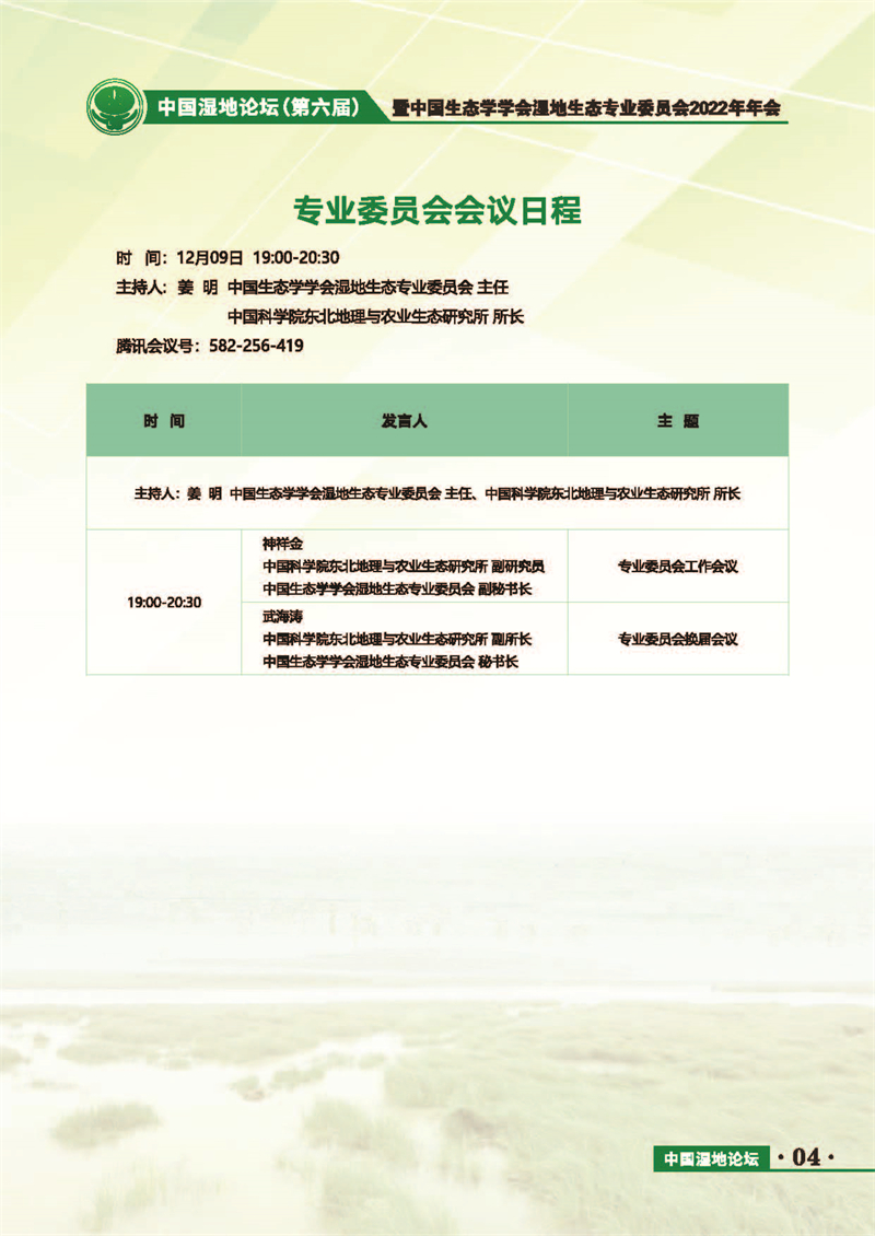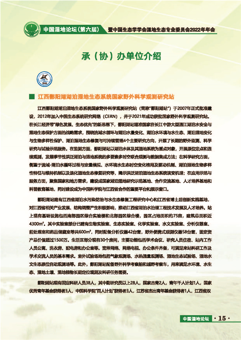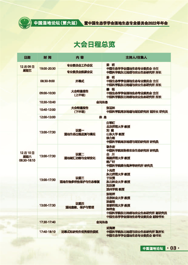 中國(guó)濕地論壇(第六屆)暨中國(guó)生態(tài)學(xué)學(xué)會(huì)濕地生態(tài)專業(yè)委員會(huì)2022年年會(huì) 會(huì)議手冊(cè)