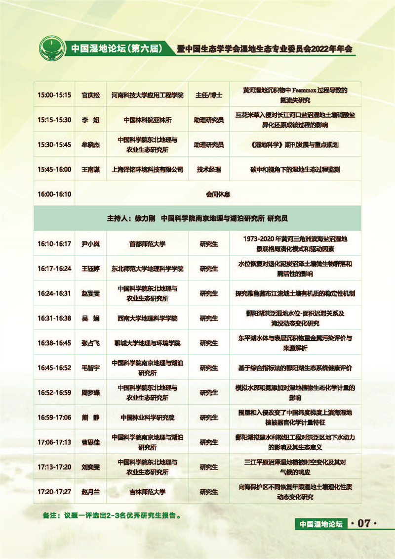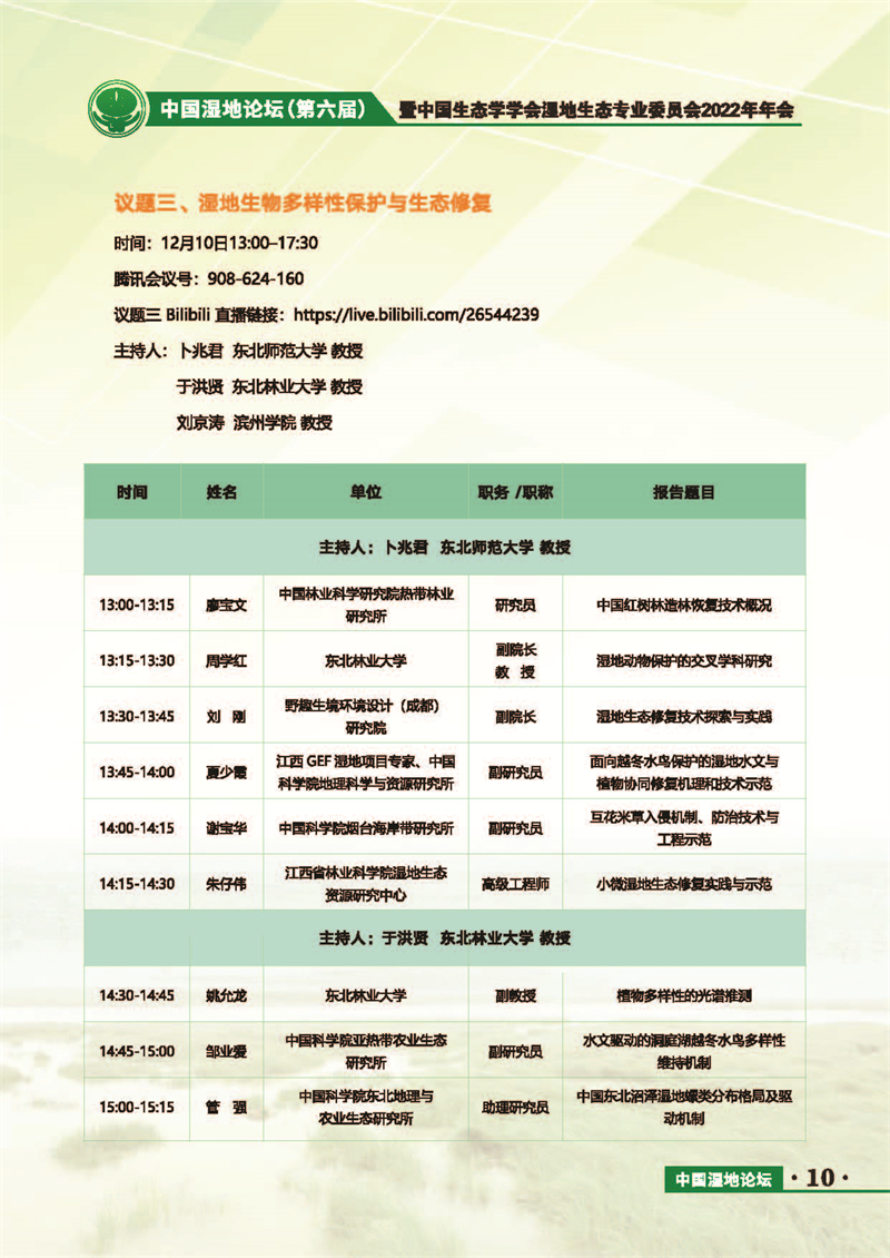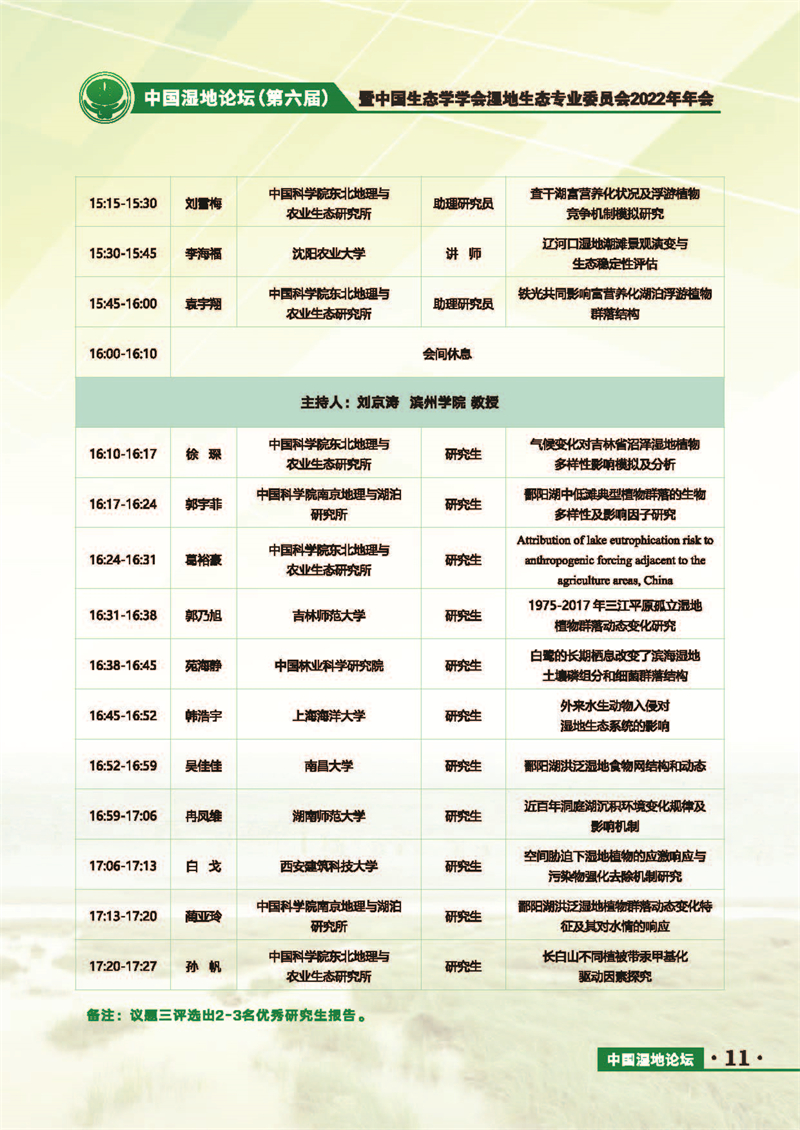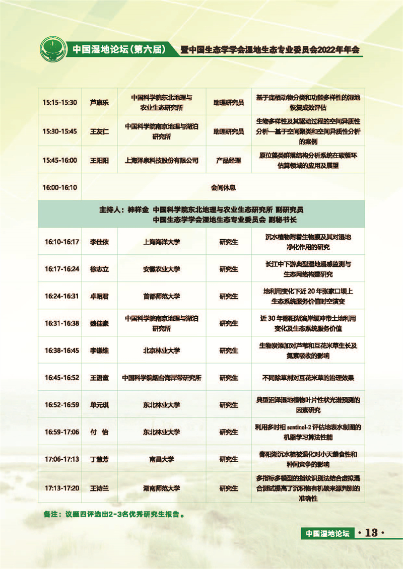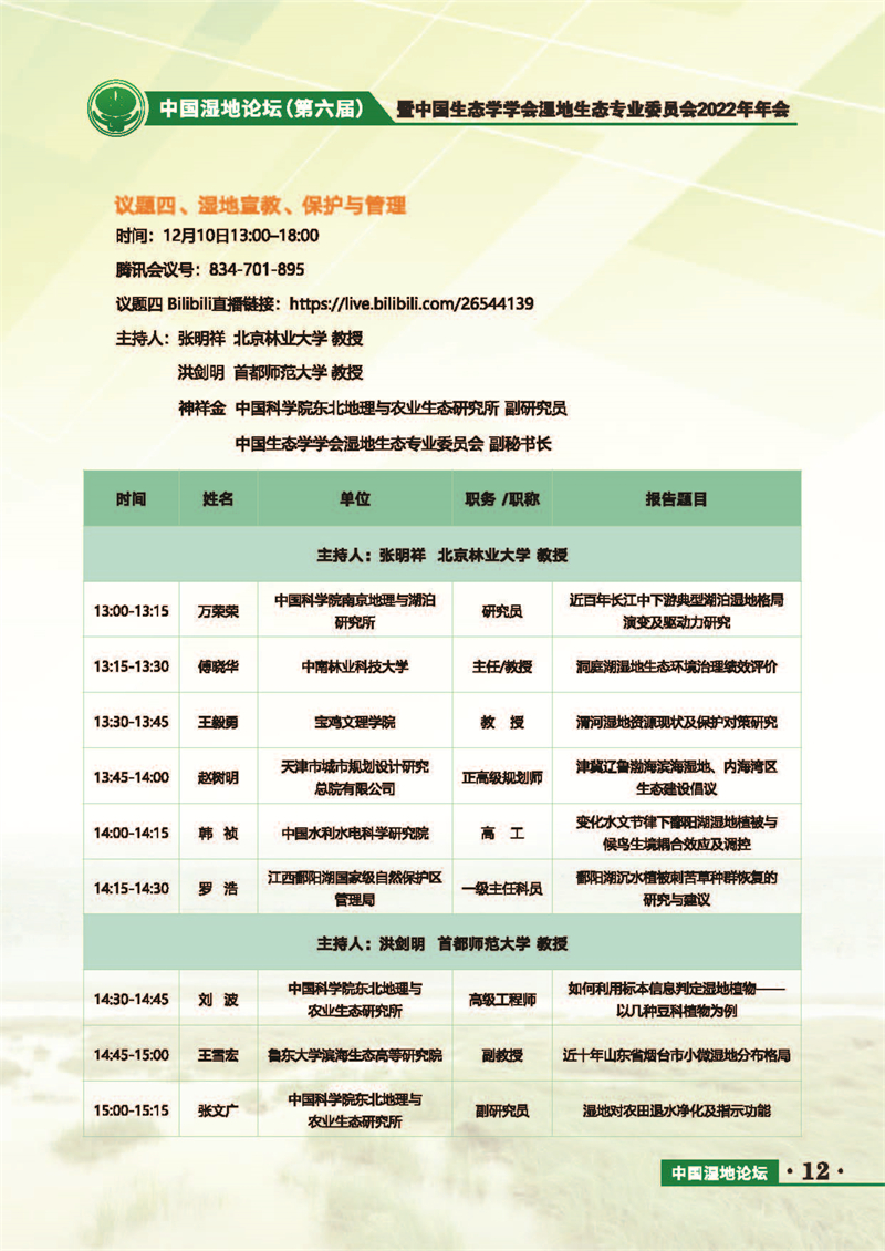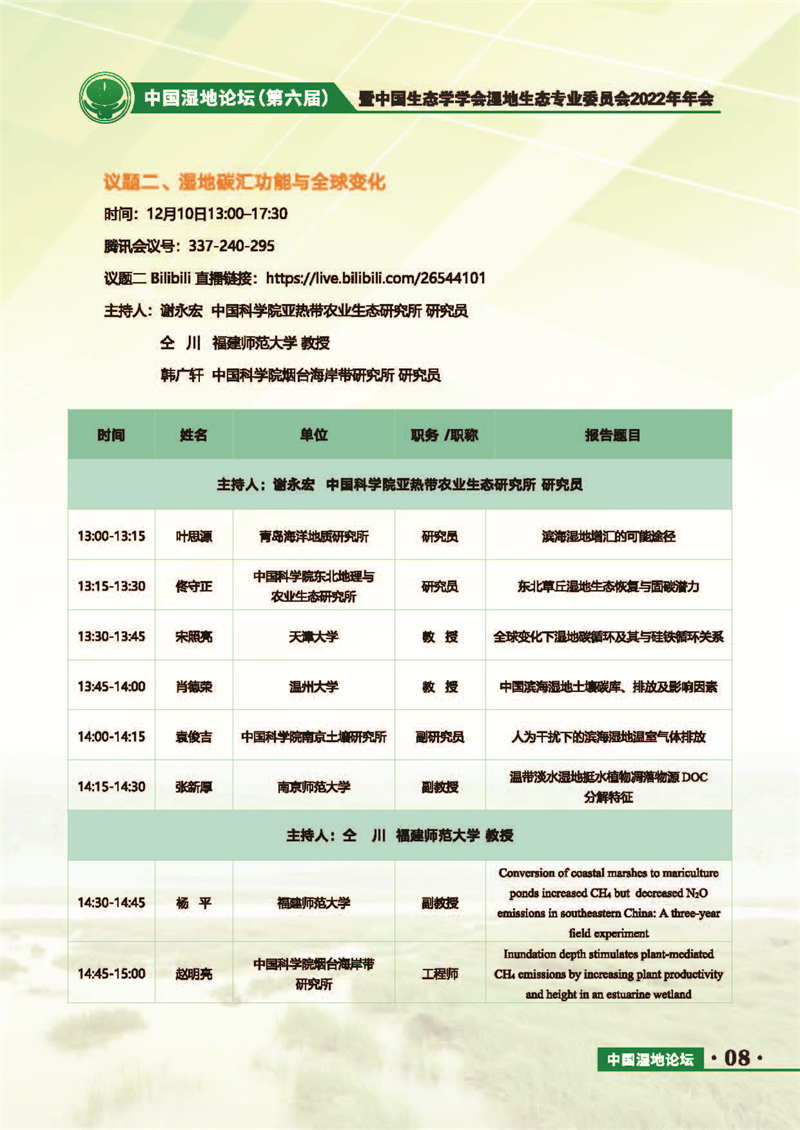 中國(guó)濕地論壇(第六屆)暨中國(guó)生態(tài)學(xué)學(xué)會(huì)濕地生態(tài)專業(yè)委員會(huì)2022年年會(huì) 會(huì)議手冊(cè)